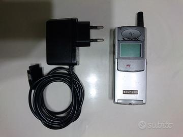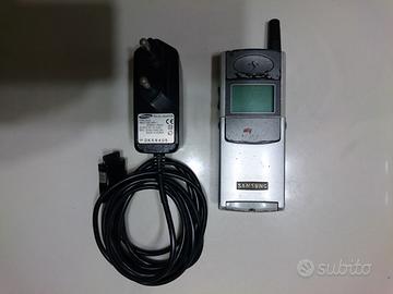 Samsung SGH-2200 Dual Band Vibrazione Comandi Vocali Registratore Fusi Orari Condizioni: Estetiche: ottime di struttura, deprecabili di vernice Funzionali: ottime Batteria: originale, condizioni di salute ignote Caricabatteria: originale, ottimo NETWORKTechnology GSM 2G bandsGSM 900 / 1800 GPRSNo EDGENo LAUNCHAnnounced1999 StatusDiscontinued BODYDimensions98 x 44 x 22 mm (3.86 x 1.73 x 0.87 in) Weight111 g with slim battery (3.92 oz) SIMMini-SIM DISPLAYTypeMonochrome graphic Size Resolution115 x 60 pixels, 4 lines, 19:10 ratio Fixed icons Dynamic font size Softkey MEMORYCard slotNo Phonebook100 Call records10 dialed, 10 received, 10 missed calls 5 message templates 20 voice dial numbers 140 sec voice memo CAMERA No SOUNDLoudspeakerNo Alert typesVibration; Monophonic ringtones 3.5mm jackNo COMMSWLANNo BluetoothNo GPSNo RadioNo USB FEATURESSensors MessagingSMS Browser ClockYes AlarmYes GamesNo Languages14 JavaNo Voice dial Voice memo Speed dial Manner Function Built-in type ear microphone Menu shortcuts World clock BATTERYTypeRemovable Li-Ion battery Stand-by75 h Talk time2 h TypeStandard Li-Ion Stand-by125 h Talk time3.5 h