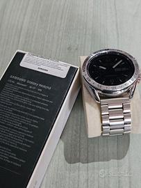 Samsung Watch 3 classic versione da 45mm silver, è inoltre dotato di connessione LTE 4G per l'abbinamento con esim. Applicata sulla ghiera girevole una lunetta in acciao ringke, completo di un cinturino in acciaio e uno sportivo in gomma. E' dotato della scatola originale e del caricatore.