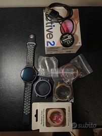 Smartwatch Samsung active 2 44mm Con cinturino rosa originale Caricabatterie originale Varie cover Vendo per inutilizzo ZERO graffi ancora con pellicola sul vetro originale
