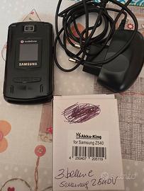 Samsung Z540V fotocamera di1.3 MP, memoria di150MB, batteria da800mAhe offre un display con240 x 320 pixeldi risoluzione (QVGA). Bluetooth,vivavoceelettore MP3. in buonecondizioni e peffettamente funzionante, 4 batterie di cui 2 nuove ed una inserita nel telefono, carcabatterie e cavo dati per pc e di ricarica. si predilige consegna a mano