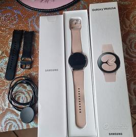 Vendo Samsung Galaxy Watch4 nella colorazione Pink Gold, dimensione 40mm.L'orologio è dotato del cinturino originale Samsung in silicone color Pink Gold (taglia S/M). Il cinturino è pulito, ma mostra lievi segni di scolorimento dovuti all'uso quotidiano. Lo schermo perfettamente funzionante, ci tengo a precisare che il danno è limitato al solo vetro. Comprende anche un cinturino nero e il suo caricabatterie magnetico originale.