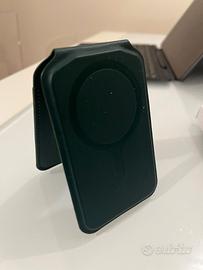 Satechi Portafoglio MagSafe Magnetico, supporto regolabile a doppio lembo in materiale sintetico (PU), 4 carte, NFC frontale, accessorio da viaggio per iPhone 16-12 verde (COME NUOVO)