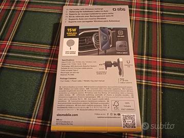 sbs supporto auto con cavo retrattile e ricarica wireless compatibile con MagSafe.