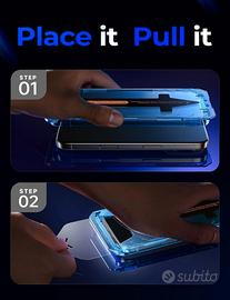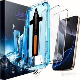 Vendo set completo di accessori compatibili con iPhone 16 Pro Max, composto da cover protettiva e vetri temperati multipli (trasparenti e privacy). Soluzione ideale per protezione completa di schermo e scocca.