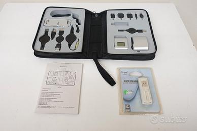 Lotto di 14 pezzi composto da vari accessori, adattatori e lettori multi formato per telefonia / informatica in pratica valigetta di trasporto. Incluso mnuale utente ed in omaggio un ulteriore lettore di schede multimediali di vario formato nuovo mai utilizzato.