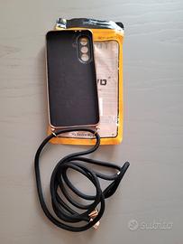 n. 1 cover, colore nero, bordi color oro rosé, con pratica tracolla in nylon, supporto ad anello girevole a 360 gradi;