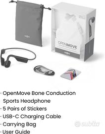 Sicurezza e vestibilità sicura: Grazie al suo design open-ear, OpenMove offre un modo sicuro per ascoltare musica o podcast durante la corsa, il ciclismo, lo sprint o l'escursionismo senza compromettere la percezione dell'ambiente circostante.