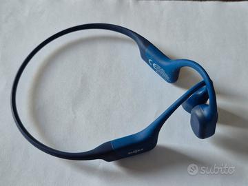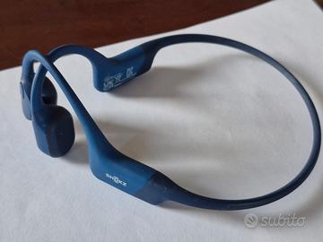 Shokz openrun colore blu, auricolari a conduzione ossea Completi di scatola, cavo per ricaricare e sacchetto contenitore originale Perfettamente funzionanti, batteria ottima, minimi segni di uso