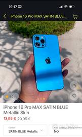 Skin per iPhone 16 Pro Max Blu Satinato.