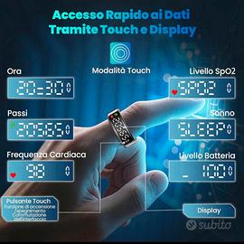 Vendo smart ring nuovo con display integrato touch Con l' app RWfit consente di tenere traccia del battito cardiaco, ossigenazione del sangue, qualità del sonno distanza ecc ecc Nuovo vendo per inutilizzo
