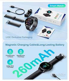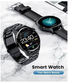 Smart Watch - display 1,32" HD Rotondo - Bluetooth 5.0 - IP67 Impermeabile - Android e iOS 1 cinturino in metallo e 1 in gomma.