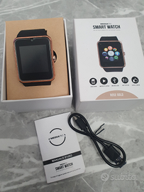 Vendo smart watch media tec, colore rose gold, ancora con pellicola. Un po' annerito perché rimasto nella scatola. Pagato 199?.
