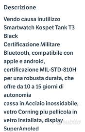 Smart Watch Tank T3 nuovo originale mai usato.Per le specifiche tecniche potete trovarle su Google. Ritiro di persona a Modena.Poco trattabile