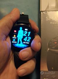 Orologio Smartwatch Cardiofrequenzimetro display da 1.56" AMOLED controlla ECG HRV Sonno, e per chi ha 𝐆li𝐜𝐞𝐦𝐢𝐚 da tenere d'occhio,da il livello di glicemia nel sangue, poi Pressione Sanguigna SOS Pulsante Torcia LED, tantissime attivita Sportive Compatibili.funziona con iOS e Android.solo aperta la confezione stando attento a non rovinare la pellicola che come potete vedere dalle foto e ancora al suo posto.sul noto sito online costa 80 euro.