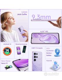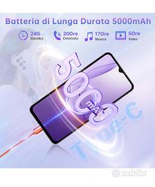 OUKITEL C2 Smartphone 16(4+12) GB RAM + 128GB ROM/TF 1TB, Android 14 6,52" HD Telefono Cellulare 5000nAh 13MP+5MP Camera Telefono Dual SIM 4G Cellulari e Smartphone/Face ID/3.5mm Jack/Viola