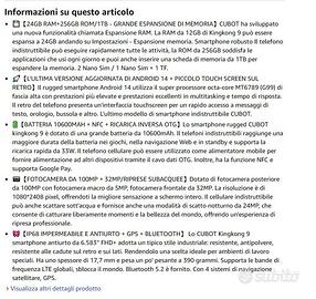 CUBOT Kingkong 9 Rugged Smartphone Android 14 (2024), 24GB+512GB Telefono Indistruttibile, 10600mAh/33W, 120Hz 6.58” FHD+ Cellulare Antiurto, 100MP+24MP Visione Notturna, 1.32" Schermo/4G Dual SIM. Altre specifiche in foto. Garanzia ufficiale Cubot di ancora 12 mesi. No offerte assurde o perditempo grazie.