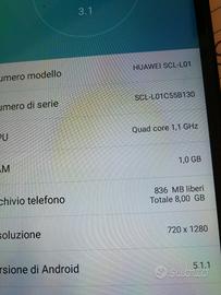 Smartphone Huawei Y6, memoria interna 8Gb, Ram 1 Gb, Display in ottimo stato 5 Pollici