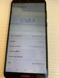 Huawei P SMART modello FIG-LX1. Telefono perfettamente funzionante. Ha solo il display scheggiato su un angolo. EMUI 9.1.0 Ram 3gb 32 gb memoria batteria originale caricabatteria originale con cavo usb di ricarica corredato di cover come da foto