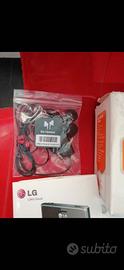 Smartphone LG L5, usato, funzionante, con scatola originale, pezzetta originale per pulire lo schermo, auricolare, senza caricabatterie. Ha il guscio di gomma per il retro, con spacchetti negli angoli in alto, un po' rovinato comunque aderisce ed è pur sempre una protezione. È stato riportato alle impostazioni di fabbrica. Ovviamente, avendo qualche anno, non ha più la garanzia LG valida e potrebbe dare qualche problema su qualche app.