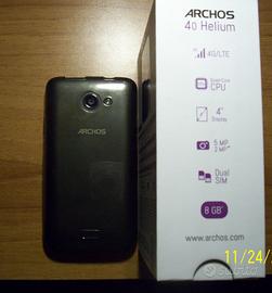 Archos helenium 40 dual sim completo di scatola originale e accessori, display 4 pollici, 8 gb, quad core 1,5 ghz ram 1 gb, fotocamera 5 mp + led flash, frontale 2mp, androi 5.1 lollipop, slot micro sd,