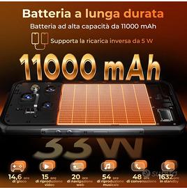 OUKITEL WP55S Rugged Smartphone 2026 Android 15, 24GB(8+16)+256GB/2TB Telefono Cellulare Indistruttibile, 11000mAh, 6.6" FHD+ 120Hz, 64MP+32MP, MTK Helio G100, Dual SIM/NFC/Fingerprint/FaceID/OTG/GPS