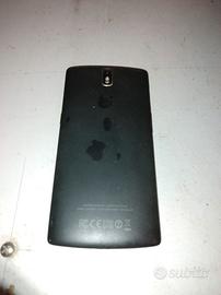 Smartphone storico OnePlus One. Probabilmente versione Modello da 64GB Sandstone Black. Presenta segni d'uso/danneggiamento sul retro (macchie nere). Il telefono si accende correttamente, ma non è stato testato a fondo (batteria, ricezione, ricarica). Smartphone privo di scatola, caricabatterie e accessori.