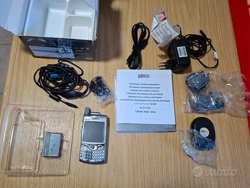 PalmOne Treo 650, uno smartphone iconico lanciato in Italia intorno afebbraio 2005. Questa specifica versione era distribuita daTIMe includeva servizi EDGE/GPRS dedicati. Ecco alcuni dettagli principali su questo dispositivo vintage: Caratteristiche Tecniche Sistema Operativo:Palm OS Garnet 5.4. Display:Schermo TFT touchscreen da 2,4 pollici con risoluzione 320x320 pixel. Processore:Intel PXA270 a 312 MHz. Fotocamera:Posteriore da 0,3 MP (VGA) con zoom 2x. Connettività:Bluetooth, supporto per reti 2G (GSM/GPRS/EDGE) e slot per schede SD/MMC. Memoria:Circa 32 MB di memoria interna utilizzabile. Contesto Storico e Prezzo All'epoca del lancio, il Treo 650 era considerato un dispositivo di fascia alta per professionisti, con un prezzo suggerito al pubblico di circa699 euro. L'etichetta gialla visibile sulla scatola indica una promozione o un prezzo ribassato a150€, probabilmente legato a un'offerta speciale TIM successiva al lancio o a un fondo di magazzino. Oggi il Palm Treo 650 è un oggetto da collezione per gli appassionati di tecnologia vintage.