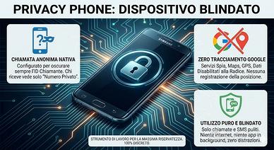 Quanto vale oggi la tua privacy? Probabilmente molto più di 49€. Non sto vendendo un normale smartphone per scorrere i social, giocare o navigare su internet. Sto vendendo uno strumento di comunicazione blindato e ripulito, configurato su misura per chi esige la massima riservatezza e vuole uscire dai radar. ✅ Guarda la seconda foto: È la prova reale che funziona. Chiama e chi riceve vede solo "Numero privato". Senza codici, è nativo. PERCHÉ È IL MASSIMO DELLA TUTELA (PLUS UNICO): Ho disabilitato alla radice la possibilità di associare ALCUN account Google. Nessuno potrà mai forzare il dispositivo o registrarlo a un account online. È blindato anche nell'utilizzo. ✅ Chiamata Anonima Nativa Permanente. ✅ Zero Tracciamento Google. GPS, Dati e Servizi Google eliminati. ✅ Camouflage Totale: Esteticamente è un innocuo vecchio muletto (vedi foto scocca): nessuno sospetterà nulla. Includo scatola originale. TRASPARENZA TOTALE PER L'ACQUIRENTE GIUSTO: Questo telefono è da utilizzarsi ESCLUSIVAMENTE per chiamate e messaggi privati e anonimi. Il sistema operativo è un Android di vecchia generazione (su base Trend Lite del 2013), modificato nativamente per un solo scopo. Non è adatto per WhatsApp, app moderne, video, social, etc.). 📦 Privacy totale anche nell'acquisto: Effettuo spedizione rapida, tracciata e 100% discreta in tutta Italia (così non devi incontrare nessuno di persona). ⭐⭐⭐⭐⭐ Sono una persona seria con +400 feedback positivi online. Massimiliano