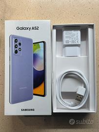 Smartphone Android Samsung A52 128gb, perfetto, sempre protettonda pellicola e cover. Vendo completo di scatola, caricabatteria e cavo originale, 3 cover colorate. Pellicola applicata.