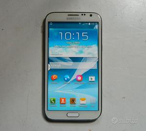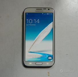 Smartphone Galaxy Note II GT-N7105, colore bianco, in condizioni ottime sempre usato con pellicola protettiva, cover batteria nuova, funzionante in tutto ma non più aggiornato, ideale come secondo telefono o per collezionisti, era considerato il dispositivo mobile top di gamma del 2012 insieme al Galaxy S III e al Galaxy Tab 2.