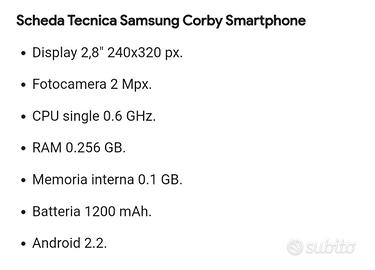 Samsung Galaxy gt i5500 Caratteristiche tecniche vedere foto allegata...