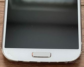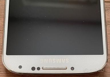 Vendo Samsung S4 bianco usato perfettamente funzionante con alcune ammaccature negli angoli. Completo di alimentatore, cavetto e auricolari. Compresa una custodia nuova per Samsung S4