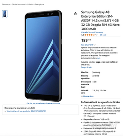 Vendo Samsung A8 in perfette condizioni, il telefono è stato acquistato da me ed usato in maniera consapevole, infatti non riporta alcun danno ed anche la batteria è in eccellenti condizioni. Il telefono è uno smartphone memorabile, con delle caratteristiche che erano all'avanguardia quando immesso nel mercato. Sto parlando per esempio della alimentazione con cavo usb c oppure dello sblocco con parametri biometrici e della protezione dall'acqua e dalla polvere. Comunque, di seguito, riporto a titolo esemplificativo le caratteristiche.