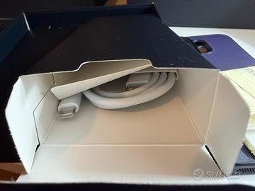 Dotato di scatola originale con cavo di collegamento e ricarica mai utilizzato e ancora perfettamente imballato come da foto, cover in silicone originale.