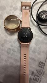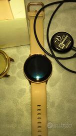 Samsung Galaxy Watch Active, colore rosa usato pochissimo completo di caricabatteria e anche custodia protettiva Disponibile nelle seguenti varianti: 4GB 768MB RAM e processore Exynos 9110 (10 nm), Dual-core 1.15 GHz Cortex-A53. Sul fronte dimensioni parliamo di uno smartwatch con un display da 1.1 pollici pollici, particolarmente contenuto e che quindi permette un buon utilizzo con una sola mano, grazie anche alle dimensioni di 39.5 x 39.5 x 10.5 mm ed al peso di 25 g .