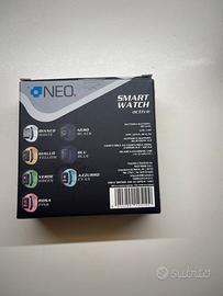 Smartwatch active nero della ditta Neo in vendita nuovo confezionato mai aperto, perché non è compatibile con Apple. Compatibilità in fotografia per Android da sei a 105 otto. Zero.