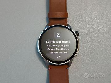 Vendo Smartwatch Amazfit GTR 4, come nuovo, in ottime condizioni con cinturino in pelle marrone.