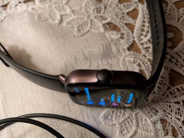 Ottime condizioni, usato poso, cinturino perfetto, batteria che efficiente, confezione e cavetto ricarica come nuovi, tutto originale. Nessun problema. Molto preciso nei battiti e ossigenazione. Con Alexa.