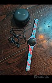 Vendo smartwatch nuovo, mai utilizzato, in condizioni perfette. Design moderno con cassa rotonda e cinturino in silicone colorato, comodo e leggero al polso.