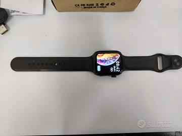 Smartwatch nero con cinturino in gomma compatibile con Android e iPhone con molte funzioni rispondere alle chiamate, leggere messaggi, contapassi ecc..