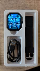 Aperto solo per testarne il reale funzionamento e mai usato, regalo doppione; smartwatch impegnativo per le dimensioni e lo spessore ma di qualità sia nel materiale della cassa che del cinturino e la ghiera girevole dell'unico pulsante per la selezione. Varie funzioni tra cui il manuale dichiara accoppiamento per chiamate in BT grazie a microfono integrato, molte attività sportive, monitoraggio sonno, cardiofrequenzimetro, resistenza all'acqua; durata stimata intorno la settimana secondo l'uso che se ne fa. Valore visto in rete di circa 60€/70€, lo cedo con consegna su Roma o spedizione tramite portale.