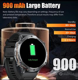 Nuovo smartwatch con grande display AMOLED touch screen per Android e Iphone, chiamate wireless in vivavoce, batteria da 900 mAh a lunghissima durata, 110+ modalità sportive, Smartwatch fitness per stili di vita attivi, controllo remoto fotocamera, previsioni meteo, riproduzione musica, subacqueo, completo di scatola, istruzioni, cavo ricarica e pellicola protezione schermo.