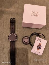Vendo bellissimo smartwatch David Lian, modello "Londra", perfettamente funzionante e completo di tutto. L'orologio unisce un design classico ed elegante (stile cronografo con ghiera tachimetrica) alle funzioni smart più moderne.