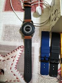 Completo della sua scatola originale e caricatore, inoltre aggiungo cinturini di ricambio( acquistati a parte), in silicone morbido ed in varie colorazioni. Di base l'orologio esce con il cinturino originale in pelle della casa madre, colore marrone,con sgancio rapido e con la possibilità di per poter cambiare il cinturino in qualsiasi momento e renderlo sportivo.