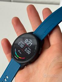 Smartwatch Garmin Forerunner 165 con cinturino blu.