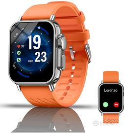 Fantastico smartwatch nuovo in scatola imballato mai aperto bellissimo display HD amoled touch always on display molto resistente impermeabile 1 atm tante funzioni grande batteria da 450mah 3 bottoni e corona fisica. Altoparlante piuttosto potente e chiaro ottimo per fare chiamate bluetooth senza telefono, chiamata da contatti o da tastierino numerico, possibilità di collegare solo audio chiamata e anche audio contenuti multimediali, notifiche di tutte le app, lettura messaggi, assistente vocale, controllo app multimediali e fotocamera, timer, sveglia, cronometro, monitoraggio sonno, frequenza cardiaca, pressione ossigeno, pressione sanguigna, ciclo fisiologico della donna, contapassi, calorie, bussola, altimetro, barometro, modalità sport con decine di sport, Centinaia di quadranti fra cui scegliere, Torcia led integrata, ecc. autonomia 20/30 gg. Compatibile con qualsiasi dispositivo Android ed apple Scatola Orologio Cinturino silicone Cinturino acciaio Cavo ricarica wireless magnetico Manuale Vetrino protezione display Auricolari bluetooth nuovi