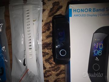 Vendo smartwatch honor band 5 praticamente nuovo. Con carica batterie e scatola originale. 4 cinturini nuovi