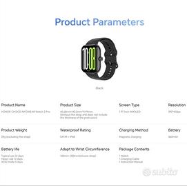Vero affare! Vendo smartwatch Honor Choice Watch (versione Pro) per inutilizzo. L'orologio è stato acceso e testato una sola volta, è praticamente nuovo di zecca, senza il minimo segno di usura, graffio o difetto estetico/funzionale.