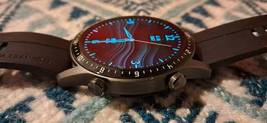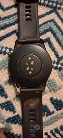 Huawei Watch GT-2 46mm, AMOLED touch, multisport, GPS, Bluetooth, cinturino silicone e bracciale in acciaio originali. il collegamento Bluetooth consente di ricevere ed effettuare telefonate dall'orologio e di visionare le notifiche (email, WhatsApp, altre applicazioni). Tracciamento GPS per gli sport all'aperto, battito cardiaco, altre funzionalità salute. Perfettamente funzionante e in ottimo stato. La batteria dura più di una settimana con uso moderato del GPS, mentre la durata si riduce con uso intensivo del GPS. Confezione originale, acquistato a inizio 2020 elettronica sostituita in garanzia a metà 2021. Contiene cavo USB-A e base di ricarica