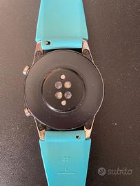 Vendo Huawei GT 2 in buono stato con2 cinturini, uno in metallo e uno sport in caucciu'. Solo una piccola riga sul display si vede solo in controluce, perfettamente funzionante.